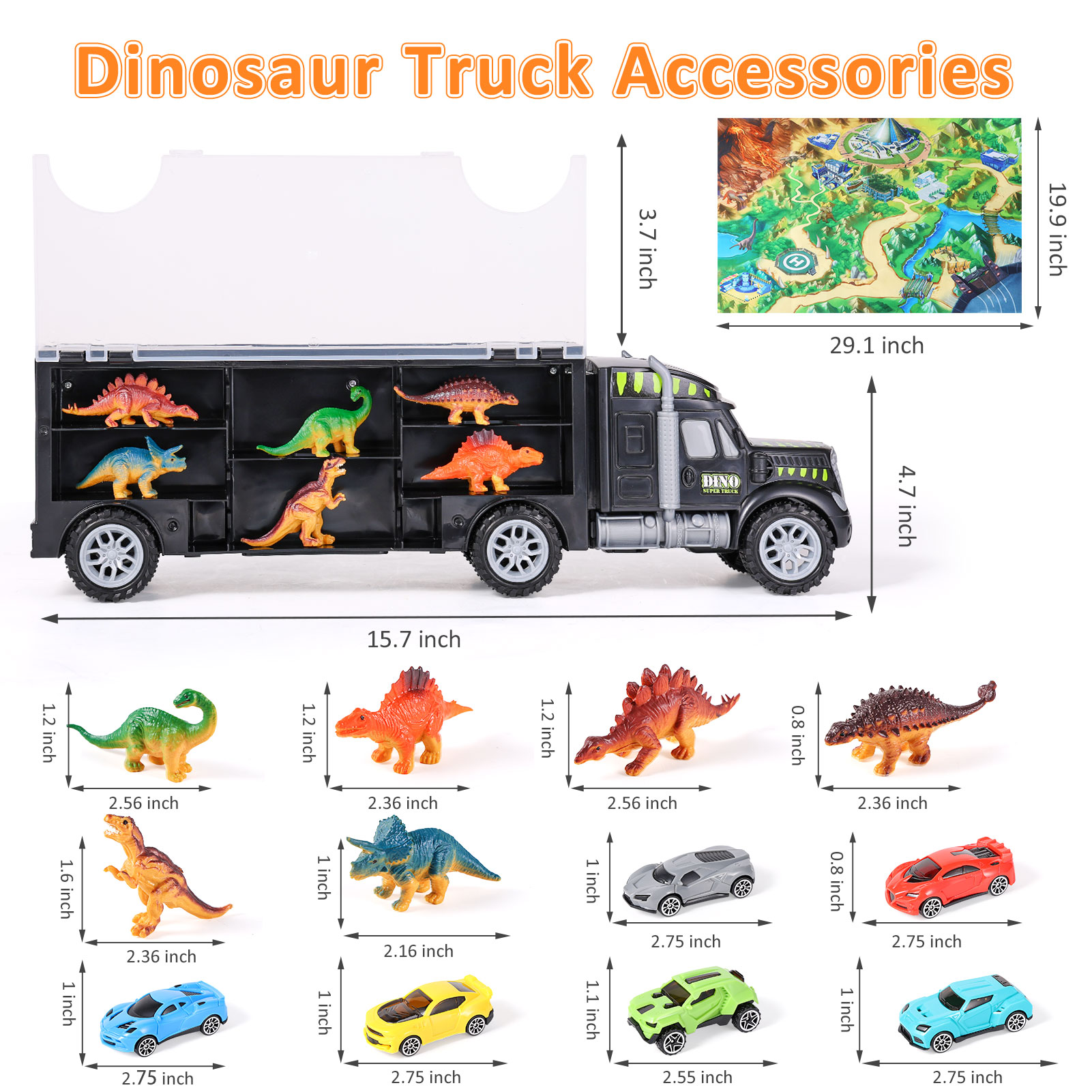 • AMAZING GIFT IDEA: It is the best dinosaur toy truck for boys. Terrific Gift for birthdays, holiday, and other special occasions. Suitable for boys and girls ages 3-12 years old. A great source of fun and joy for kids that love trucks and dinosaurs!