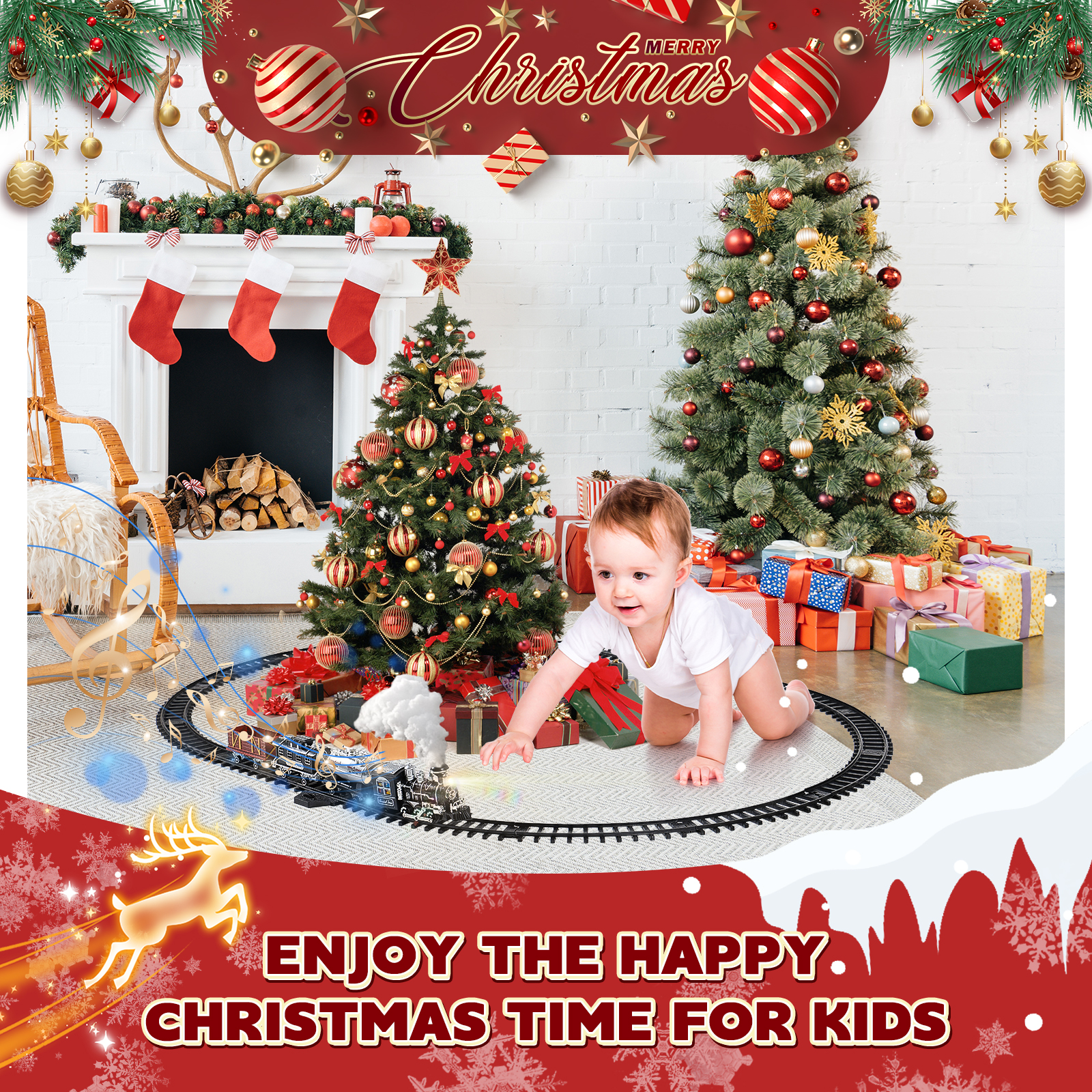 Electric Train Set with Remote Control Christmas Train Toys with Steam Locomotive Engine, Sound & Light, Cargo Car and Train Tracks Gift Toys for Age 3+ Kids