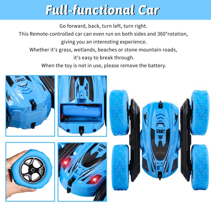 Introducing our incredible 360° Rotating RC Stunt Car – an electrifying remote control vehicle that takes playtime to a whole new level! This stunt car is not your ordinary RC car; it’s a versatile, action-packed wonder.